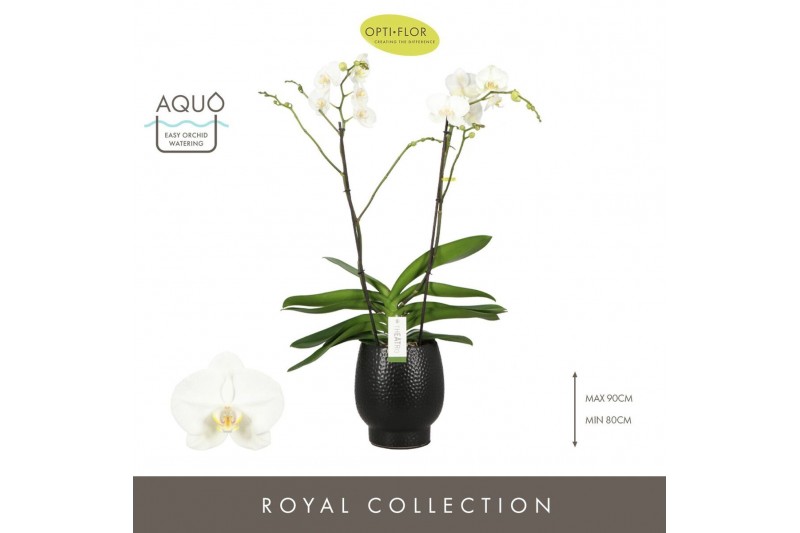 Phalaenopsis wit Theatro Classico 2 spike in Abruzzo Black Aquo 14 bl.