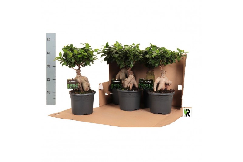 Ficus microcarpa ginseng Ficus micr. Ginseng in kunststof pot in fust