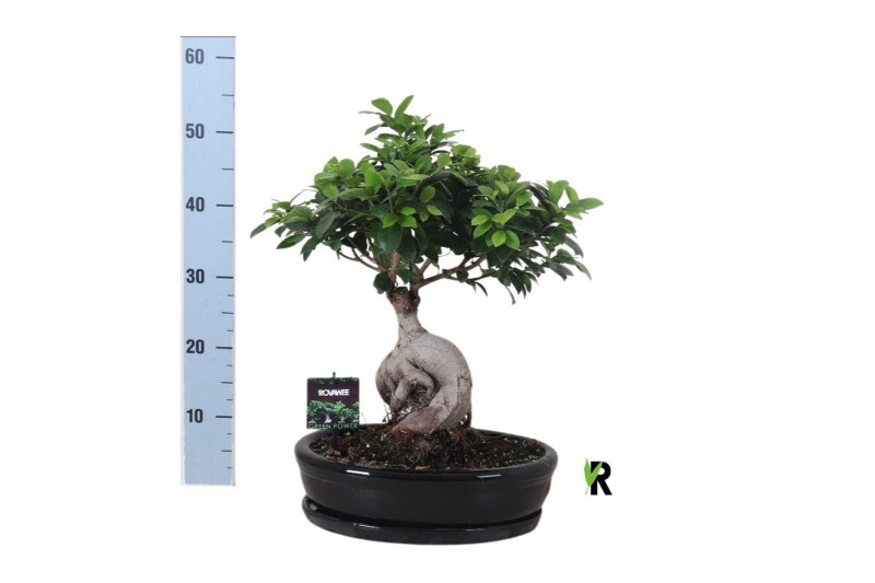 Ficus microcarpa ginseng Ficus micr. Ginseng in keramiek ovaal zwart 1