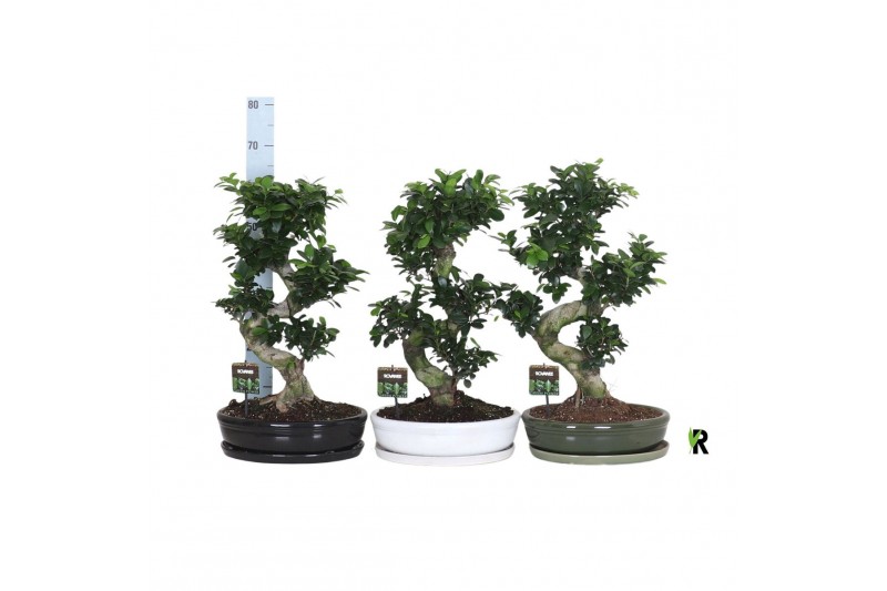 Ficus microcarpa ginseng Ficus micr. S-type in keramiek ovaal schaal m