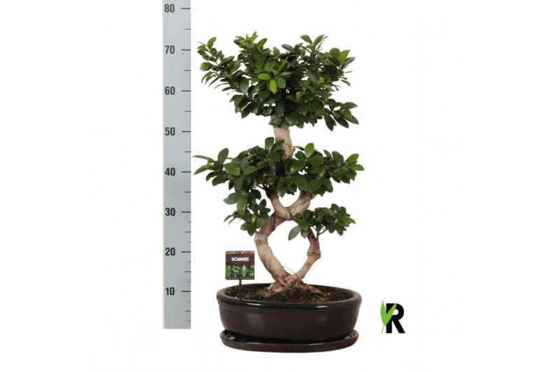 Ficus microcarpa ginseng Ficus micr. 8-type in keram. ovaal schaal met