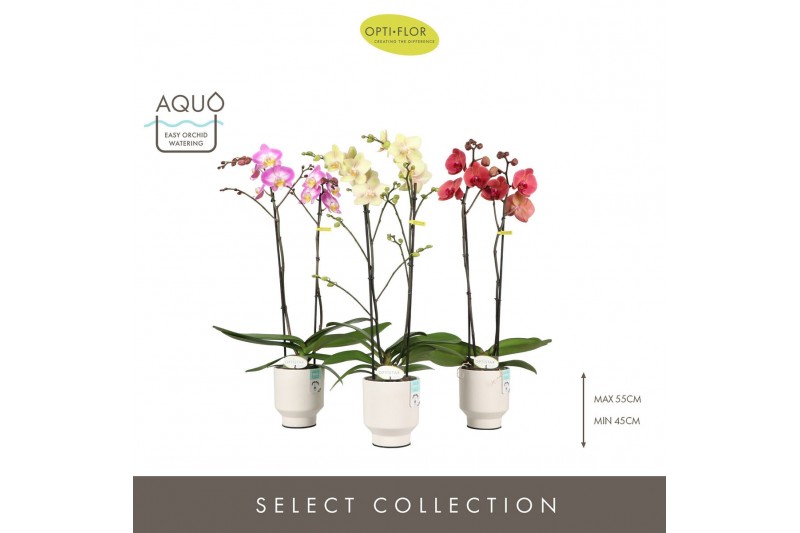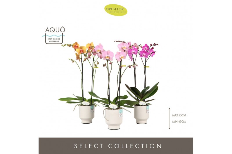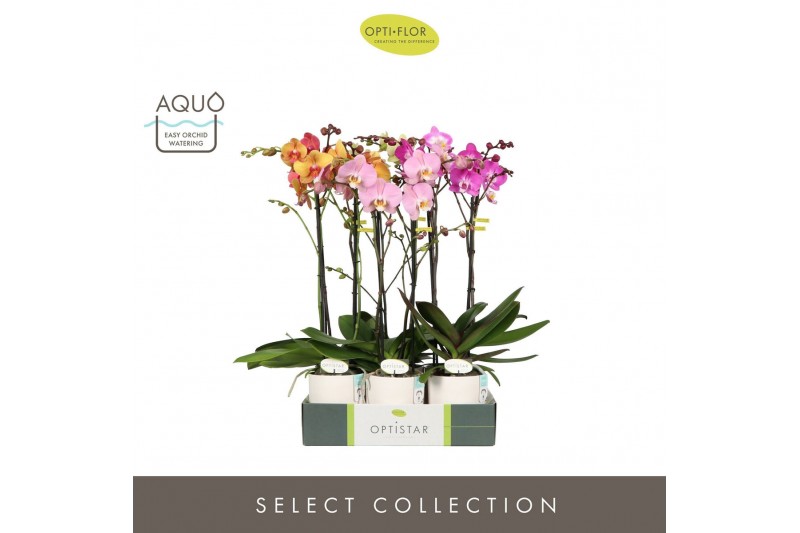 Phalaenopsis mix Optistar Mix 2 spike 50 cm in Emilia White Aquo 15 bl
