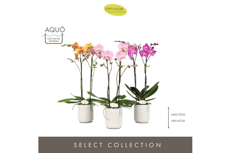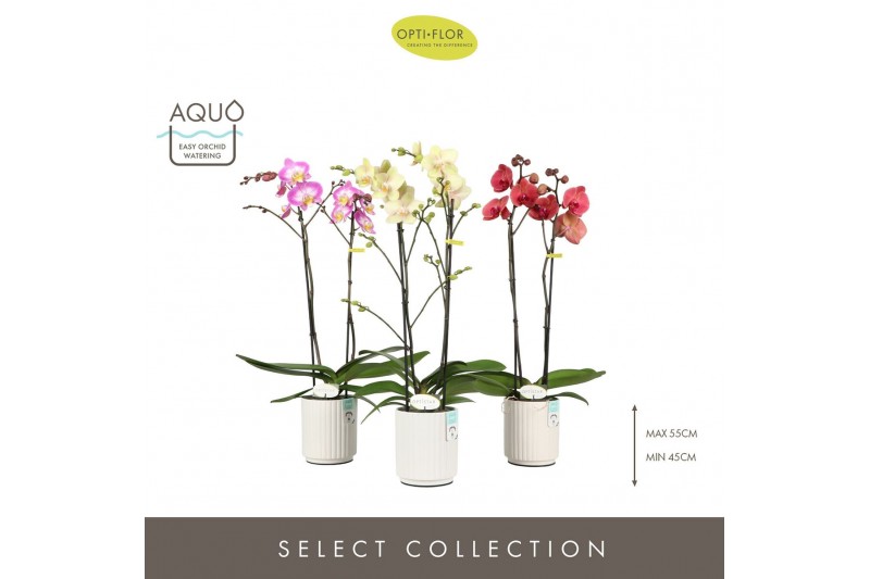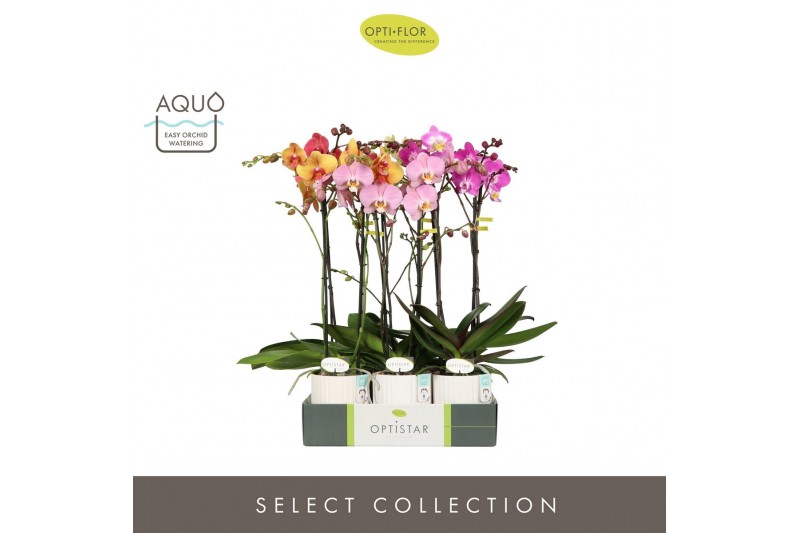 Phalaenopsis mix Optistar Mix 2 spike 50 cm in Molise White Aquo 15 bl