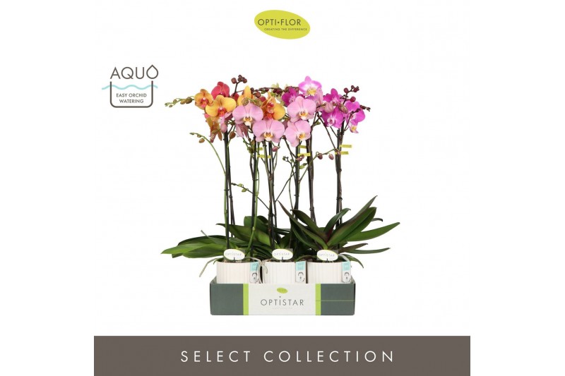 Phalaenopsis mix Optistar Mix 2 spike 60 cm in Molise White Aquo 15 bl