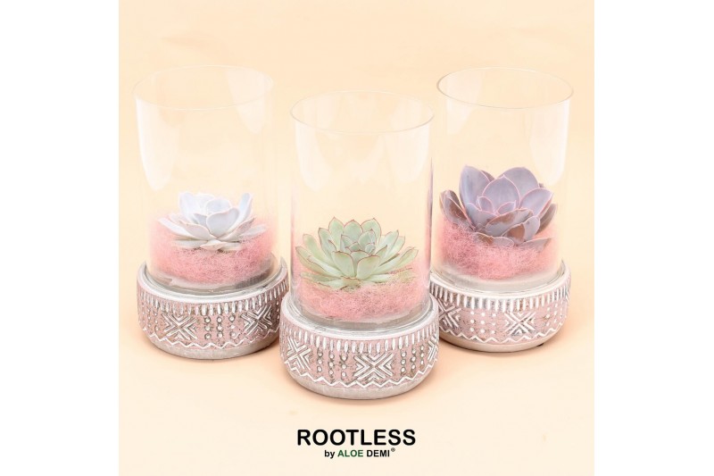 Arrangementen succulenten ROOTLESS Echeveria mix, Deer pot and glass p