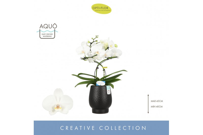 Phalaenopsis wit Balletto Wing 2 spike in Abruzzo Black Aquo16 bl. 2 t