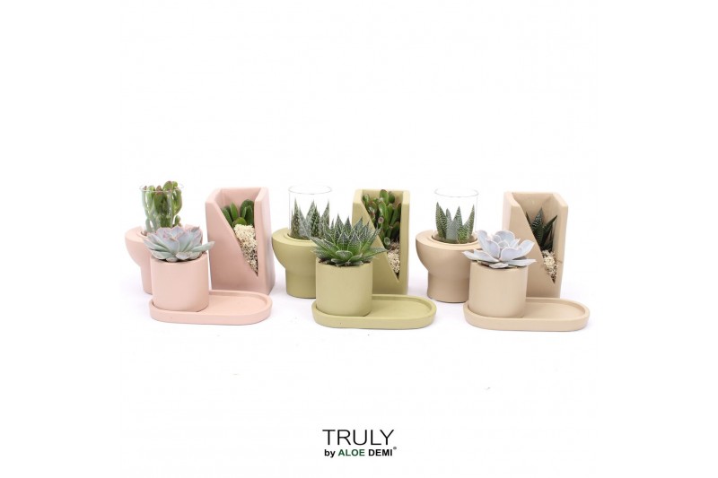 Arrangementen succulenten TRULY Crassula, Meles concrete moss - Green
